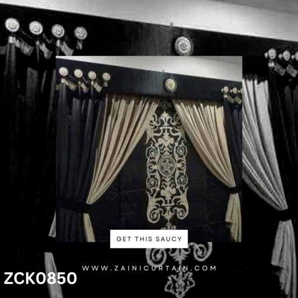 COLOR THEME: SKIN CURTAINS AND BLACK BLINDS WITH LASER WORK CENTER BUNCH ON BLINDS AND PELMET.
