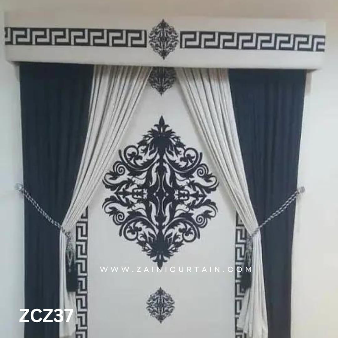 COLOR THEME:Black and Bright White Colour Curtains and Blind Set