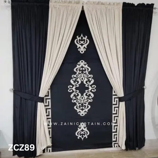 COLOR THEME:Black and Cream Curtain and Blind Set