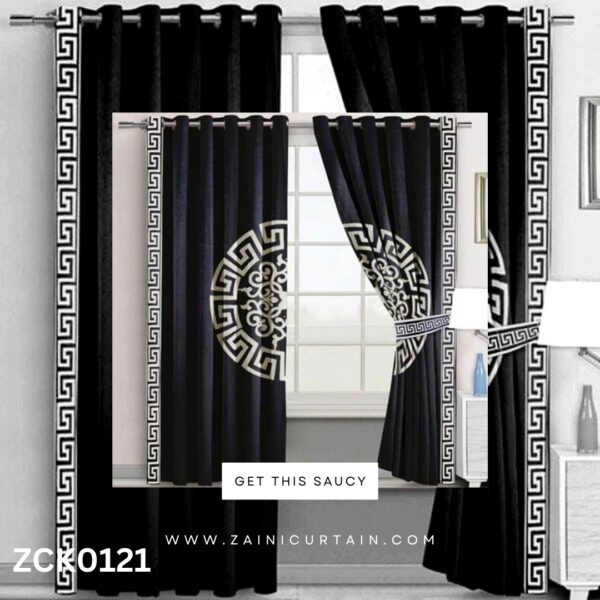 COLOR THEME: Black with White Laser Work Curtain Blind