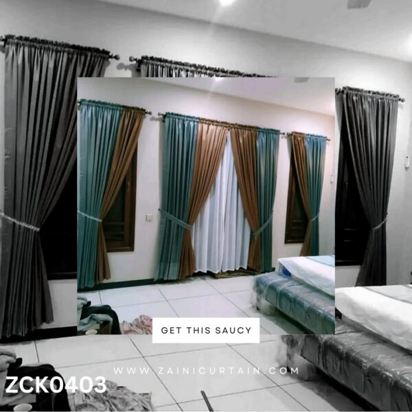 COLOR THEME: Brown and SeaGreen Colour With White Shefoon Curtains and Blind Set