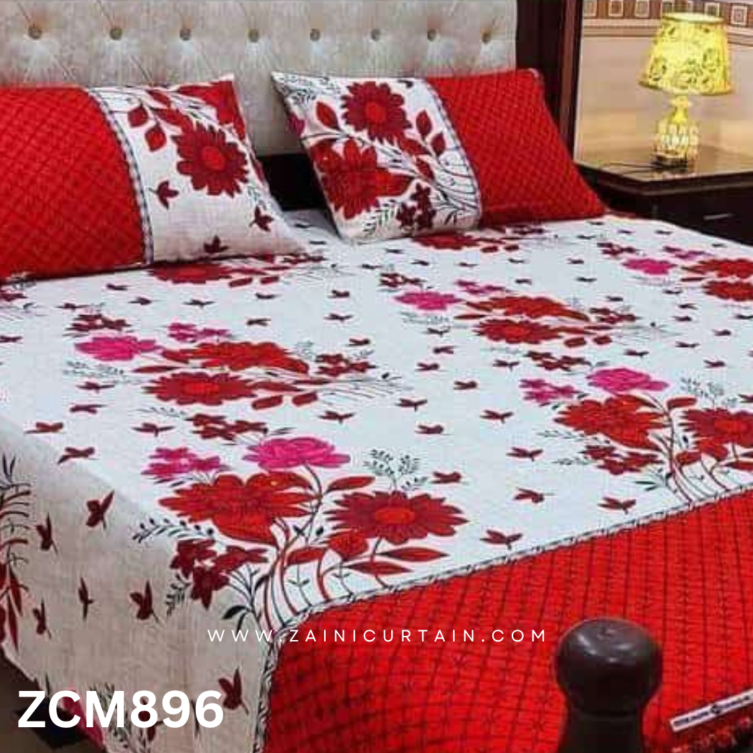 Buy Red & White Printed Bed Sheet Online at Zaini Curtain