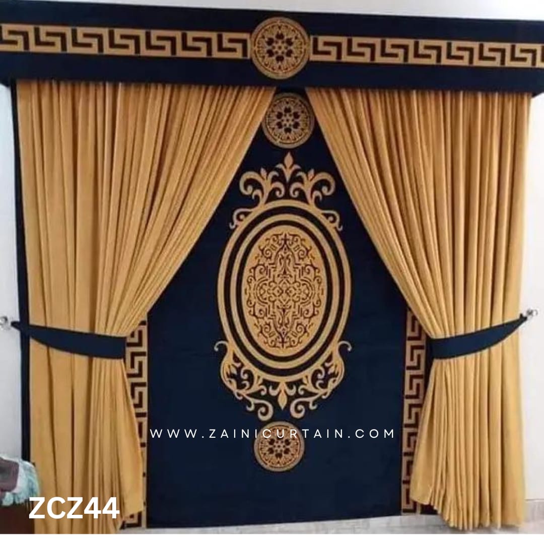 COLOR THEME:Dark Blue and Beige Colour Curtains and Blind Set