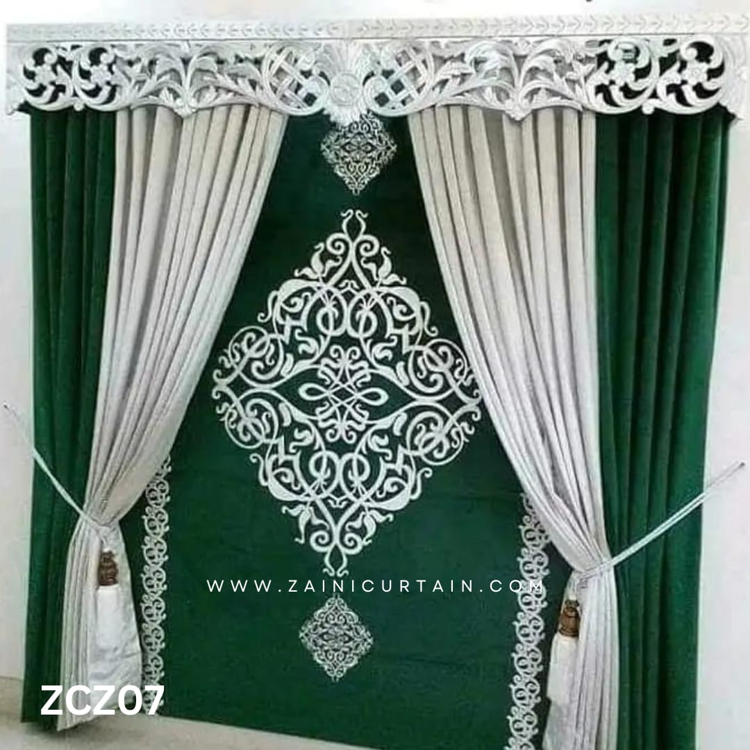 COLOR THEME:Dark Green and Light Grey Colour Curtains and Blind Set