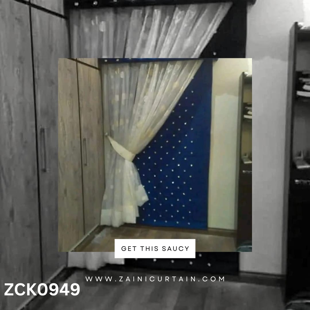 COLOR THEME: Decent Theme White Shefoon With Blue Background Curtain Blind