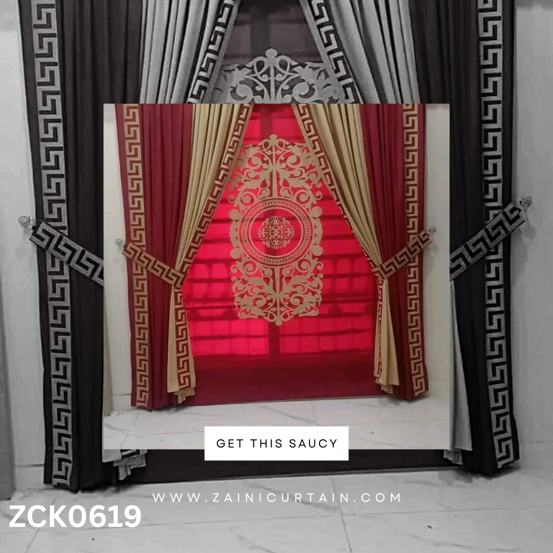 COLOR THEME: Deem Red Theme with center bunch Curtain Blind