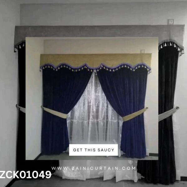 COLOR THEME: Diamond header with Blue Velvet Curtain Blind