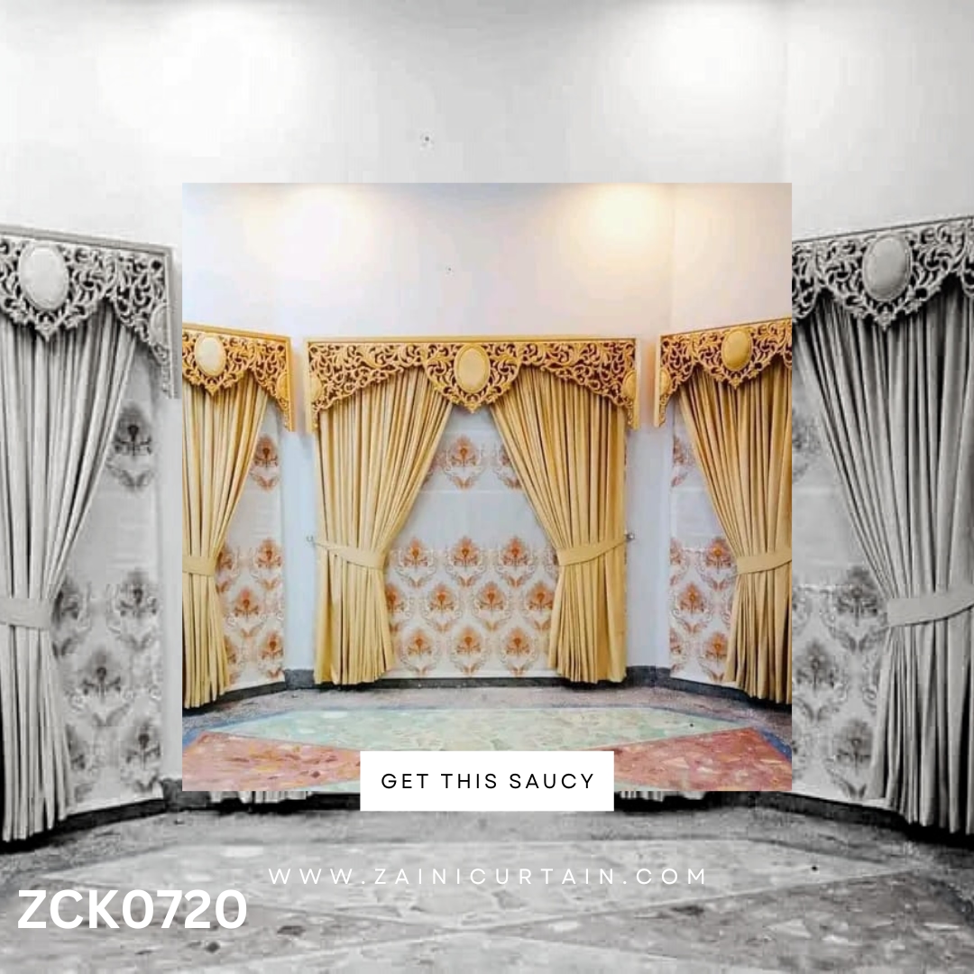 COLOR THEME: Full Golden Theme with White background Curtain Blind