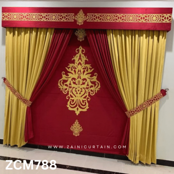 COLOR THEME: Golden & Maroon Color Theme Hall Curtain