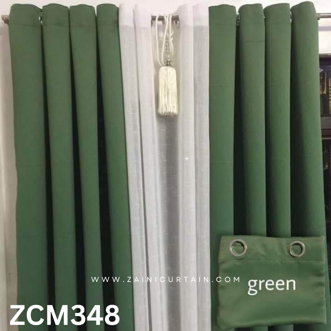 Green & White With Tussle Plain Curtain