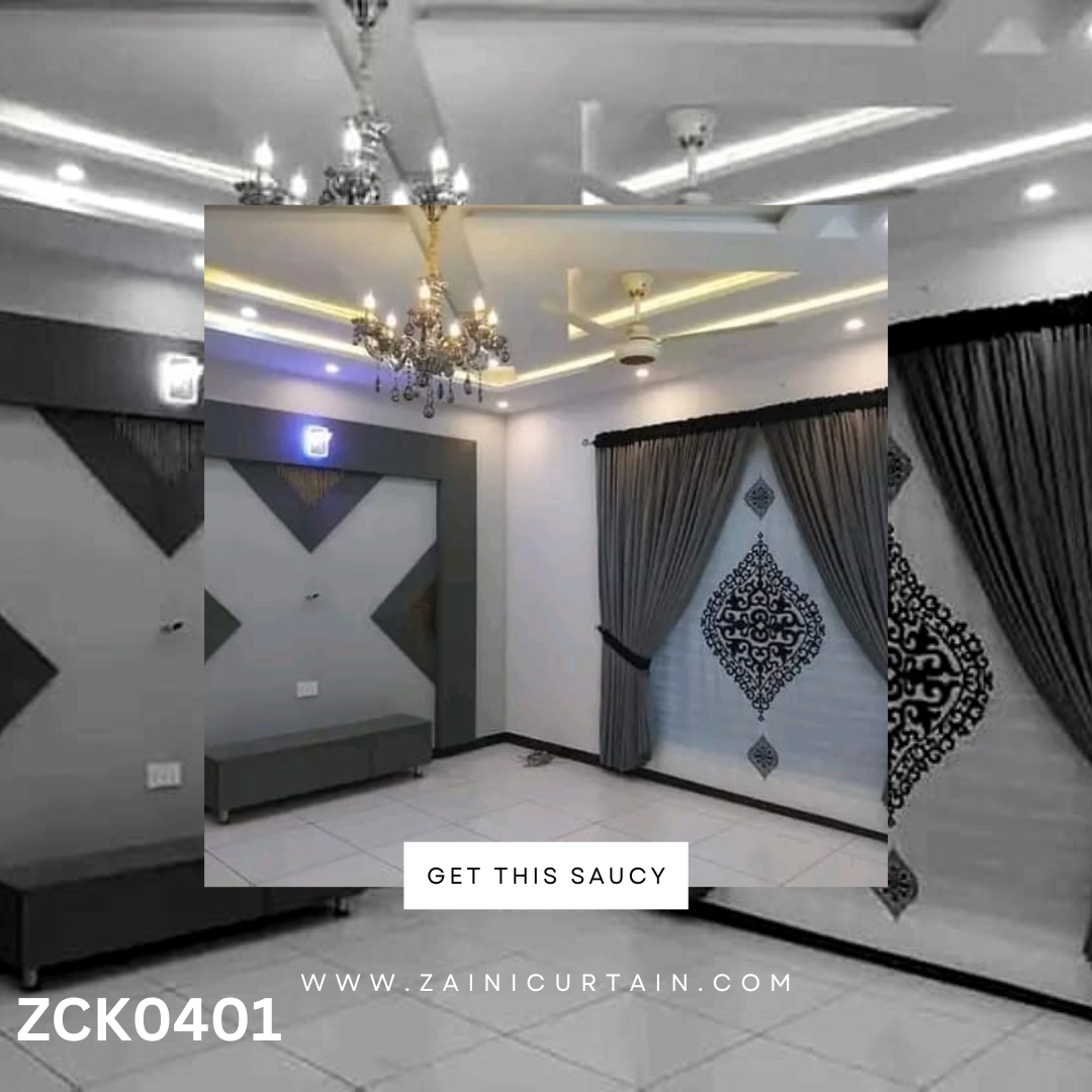 COLOR THEME: Grey Colour with Center Bunch Curtains and Blind Set