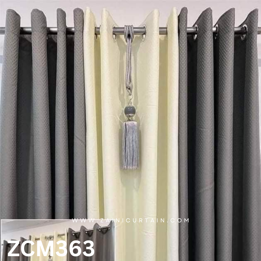Grey & Cream With Stylish Tussle Plain Curtains