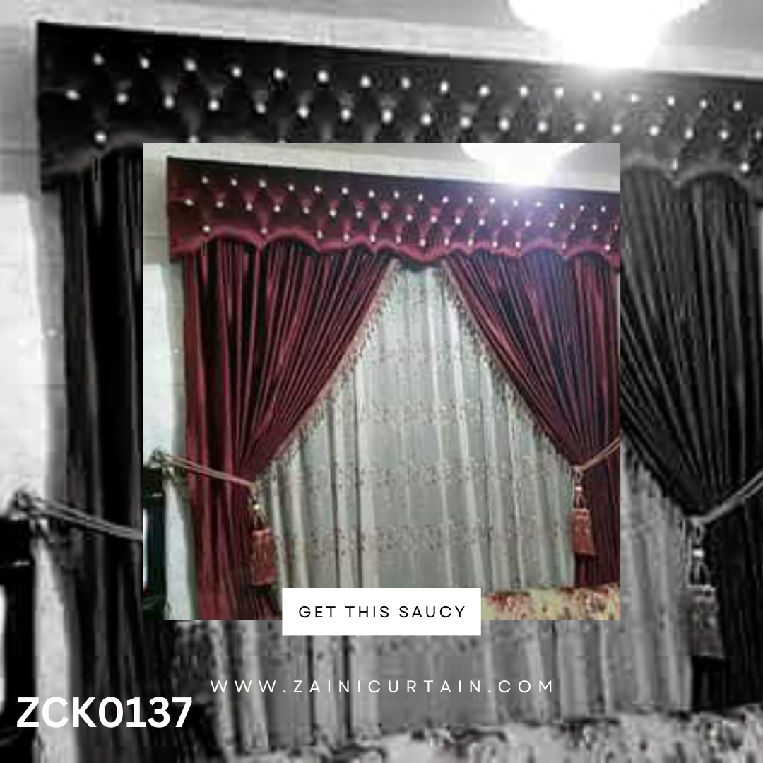 COLOR THEME: Maroon & White with Center Bunch Curtains and Blind Set