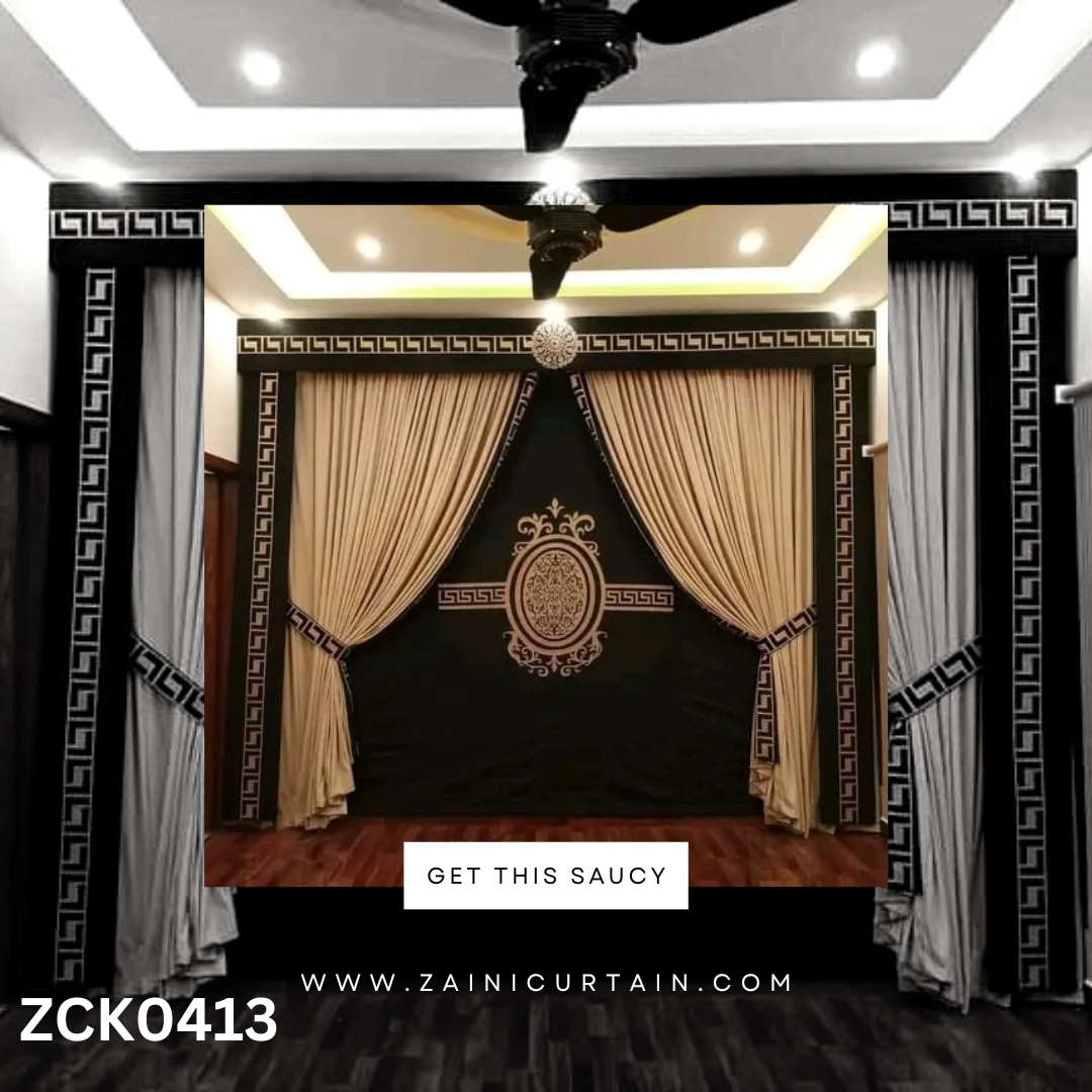 COLOR THEME: Beige & Black Theme Laser Work Curtain and Blind Set