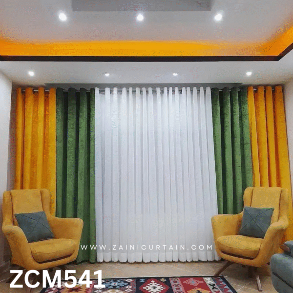 COLOR THEME: Mustard Green & White Living Room Curtain