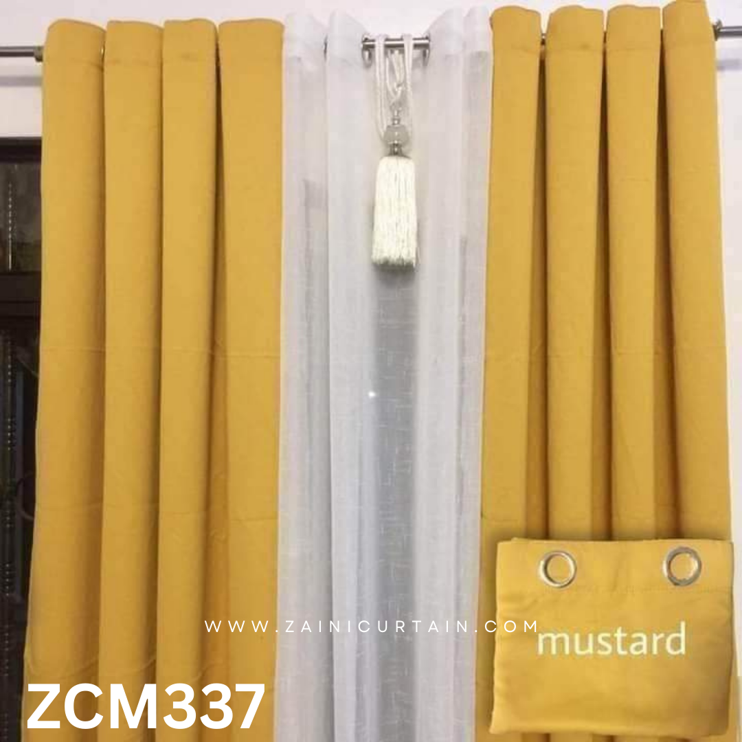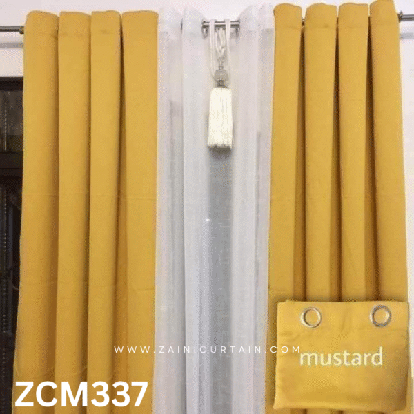 Mustard & White With Tussle Plain Curtain
