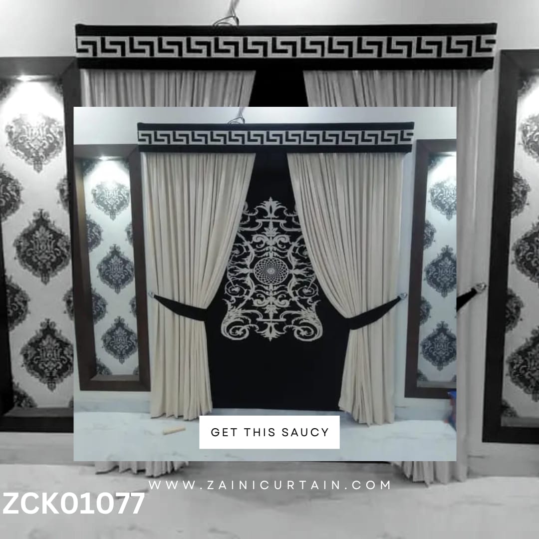COLOR THEME: Off White & Black Charming Stamp Curtain Blind