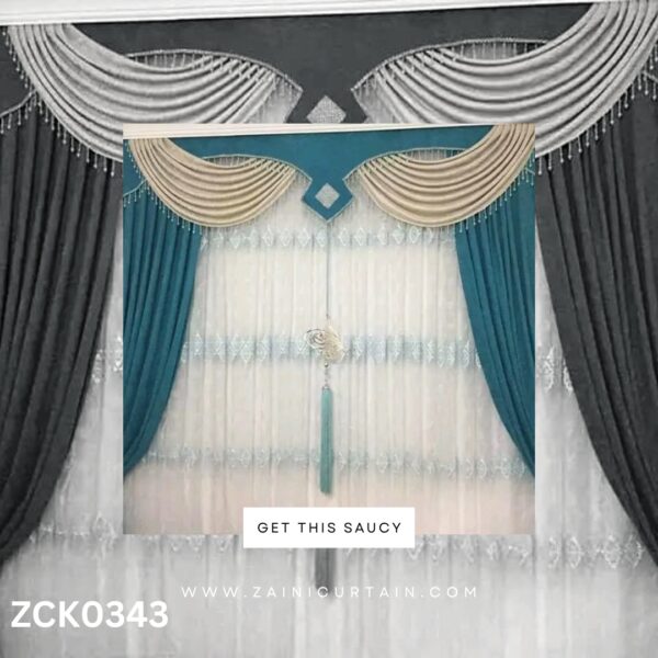 COLOR THEME: Pine Green & Skin Jhoomer Design Curtain & Blind Set