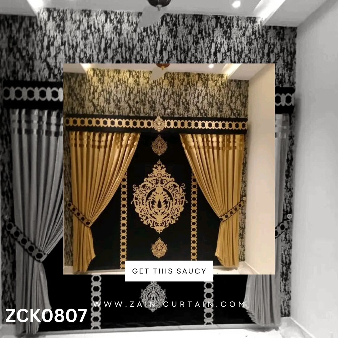 COLOR THEME: Plain Gold with Navy blue theme Curtain Blind
