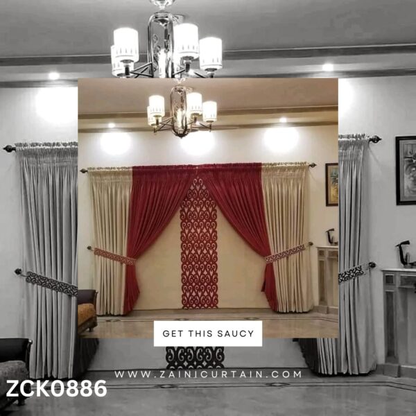 COLOR THEME: Plain Golden and Red with Long Pettern Curtain Blind