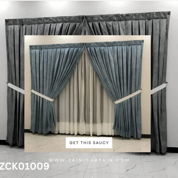COLOR THEME: Plain Greyish Velvet & White Shefoon Curtain & Blind Set