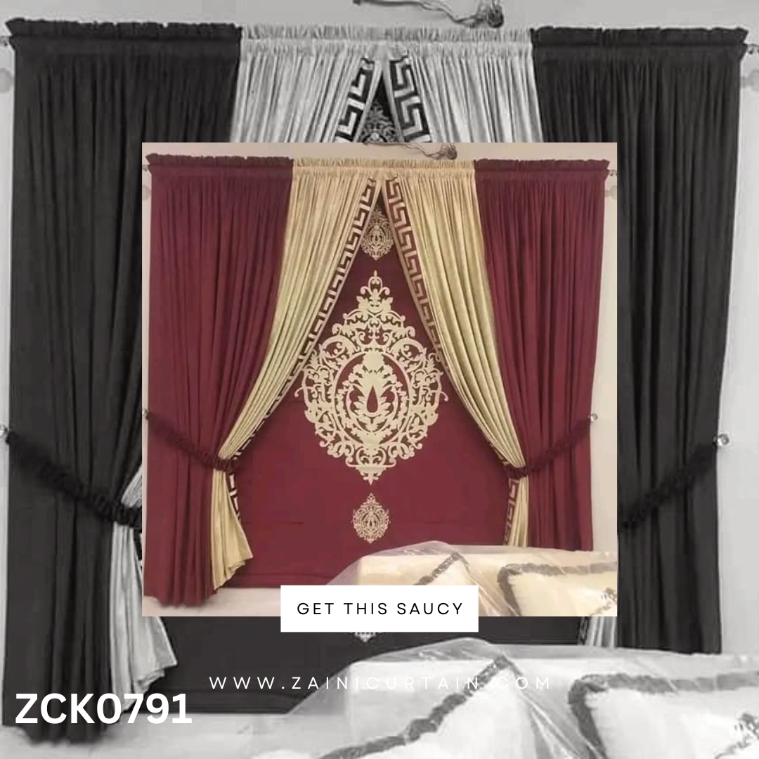 COLOR THEME: Pure Jam Red Theme with golden touch Curtain Blind