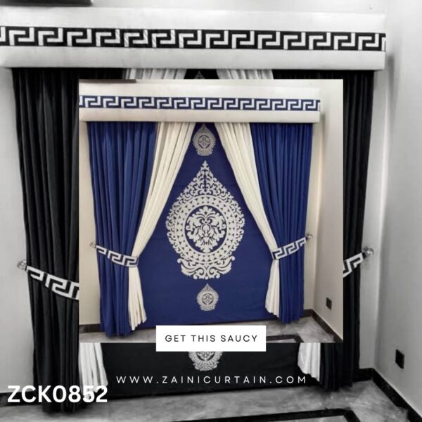 75237COLOR THEME: Royal Blue & White Theme Laser Work Curtain Blind