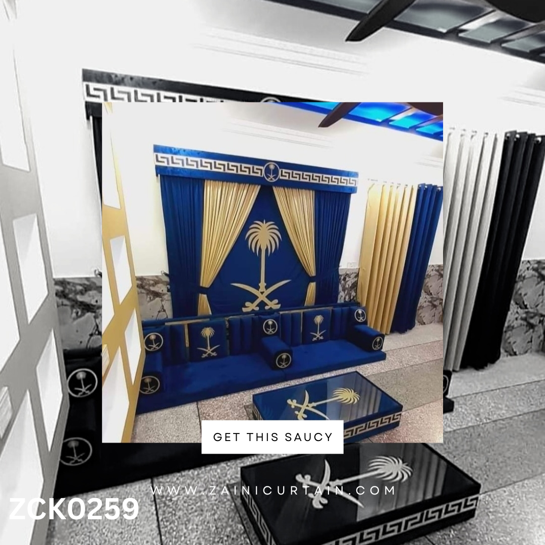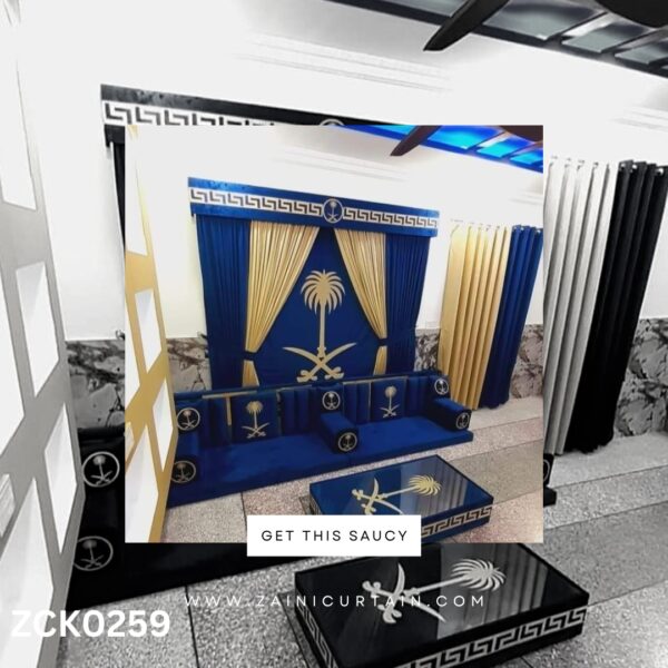 COLOR THEME: Royal Blue with Golden Touch Bunch Curtain Blind