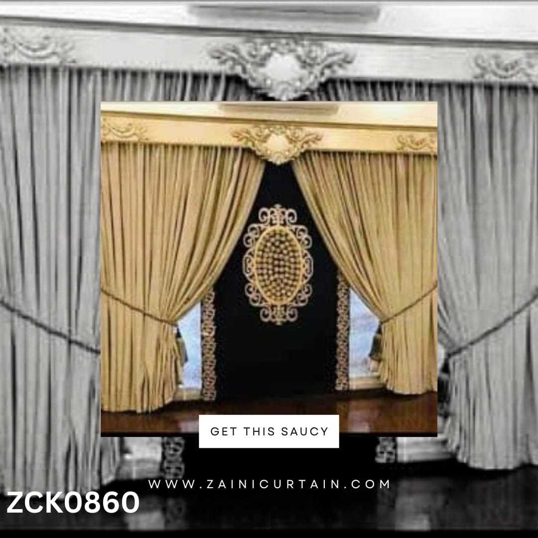 COLOR THEME: Royal header style with center bold bunch Curtain Blind