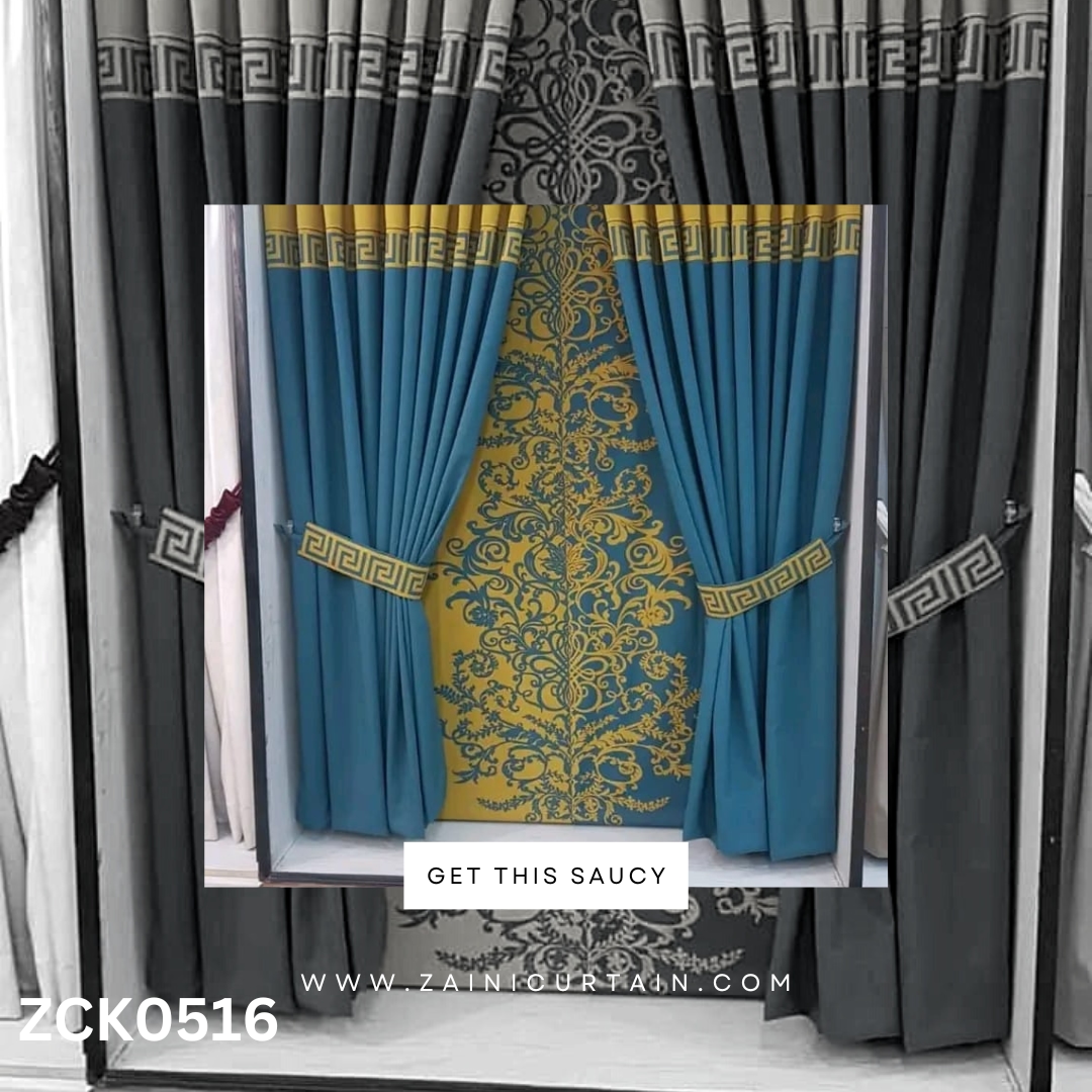 COLOR THEME: Seablue Theme with Golden Designing Curtain Blind