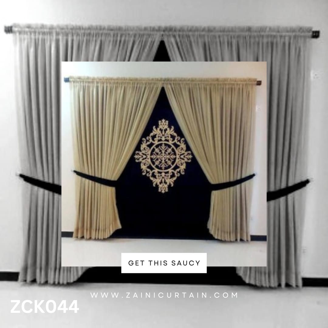 Color Theme: SKINNY CURTAIN AND DARK BLACKOUT BLACK BLIND WITH EMBROIDERED BUNCH ON CENTER POINT