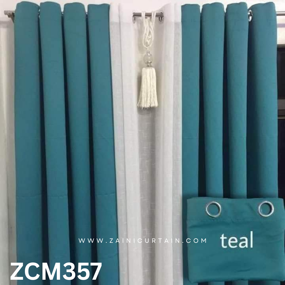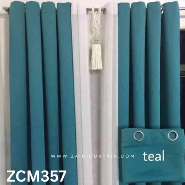 Teal Color With Beautiful Tussle Plain Curtain