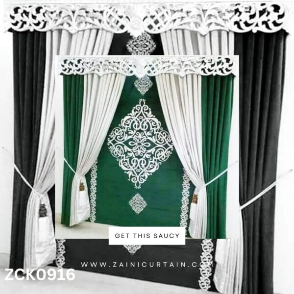 COLOR THEME: White and Green Arabic Theme Curtain Blind