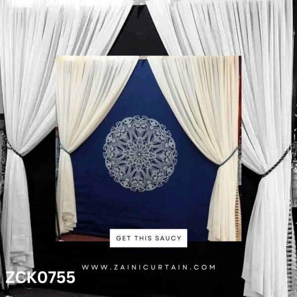 COLOR THEME: White & Blue with Center Bunch Curtain Blind