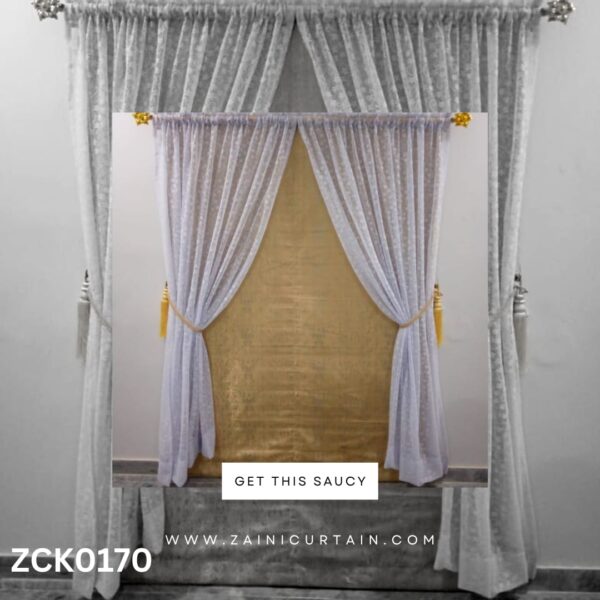 COLOR THEME: White Shefoon With Golden Background Curtain Blind